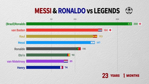※ 브라질 저널리스트인 Rodolfo Rodrigues : "오직 펠레와 호나우두만이 홀란드보다 빨리 100골을 달성했다."