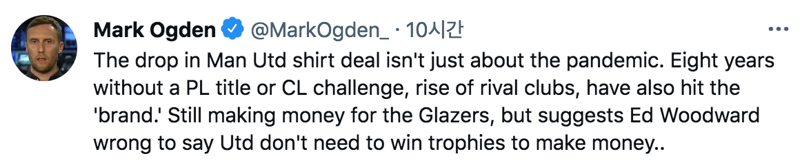 맨유가 적은 돈으로 스폰서를 구한 것은 단지 판데믹의 영향이 아니다.