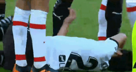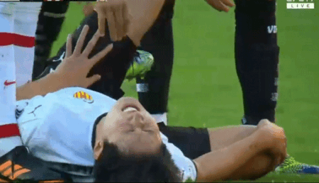 [무릎 밟혀서 고통스러워하는 이강인.gif]