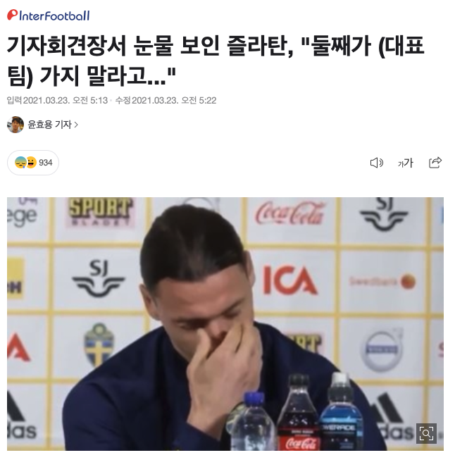 39세에 국대 합류, 눈물 흘린 즐라탄