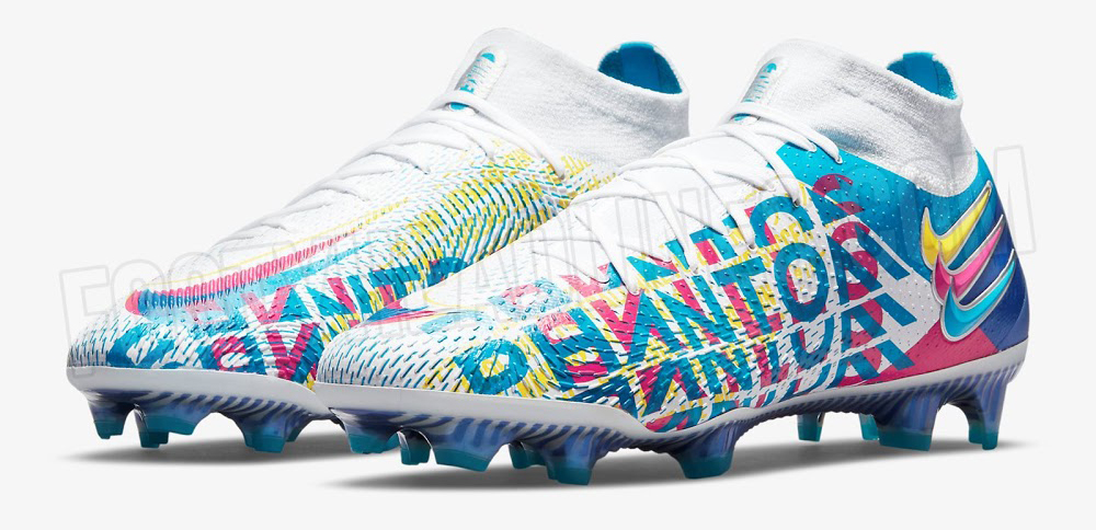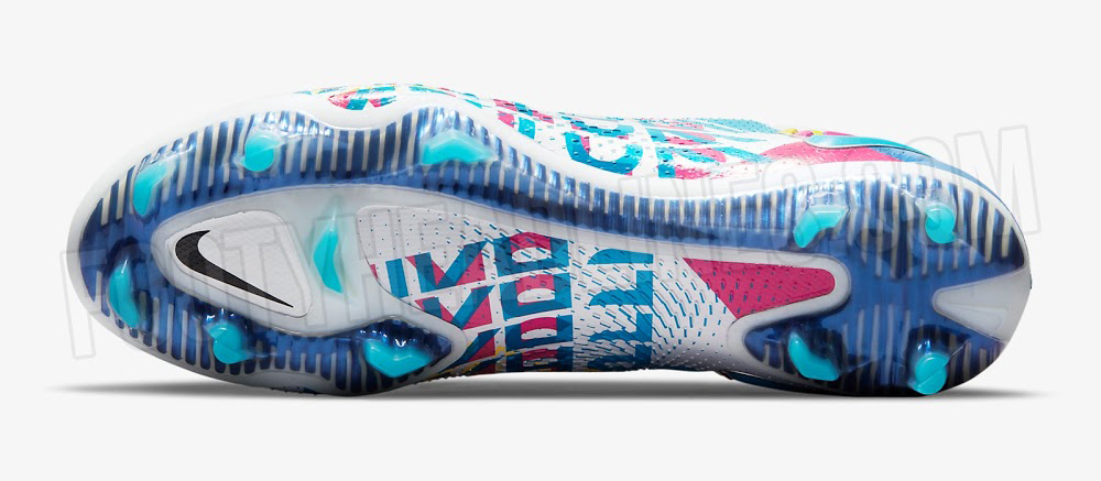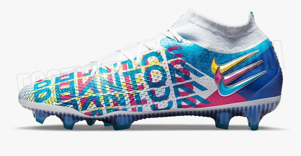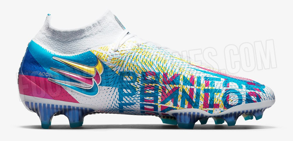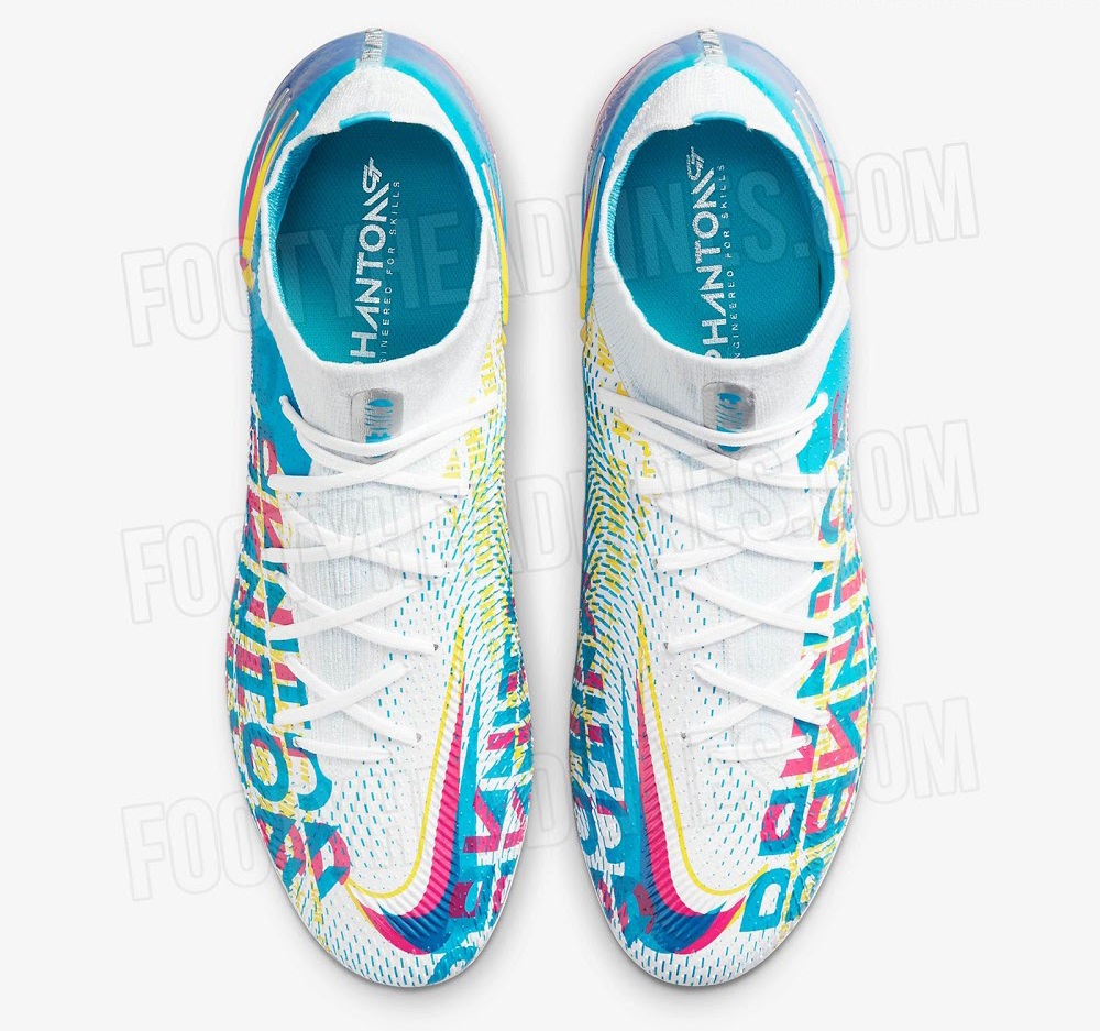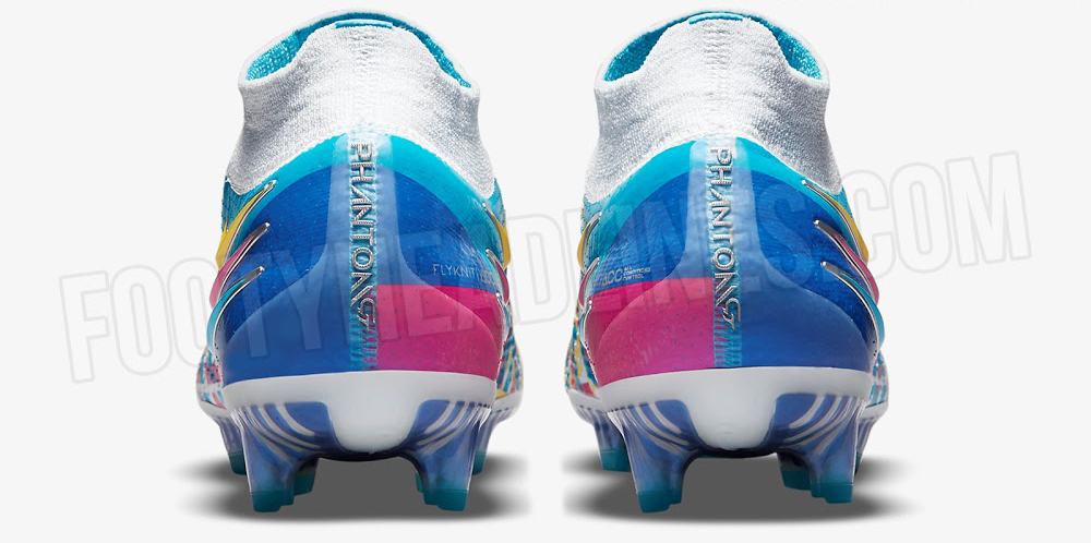 그 주인공은 팬텀 GT입니다. 한정판으로 출시될 이 축구화는 Chlorine Blue / Pink Blast / Opti Yellow 컬러 조합으로 제작된 모습입니다.