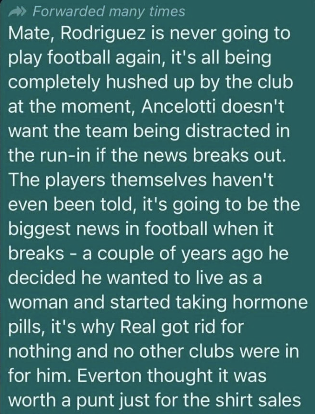 하메스는 이제 절대 다시 축구를 못하는데 이유가 성전환을 위해 하메스가 2년전부터 여성 호르몬제를 복용했다는 내용의 찌라시가 논란이었는데요.
