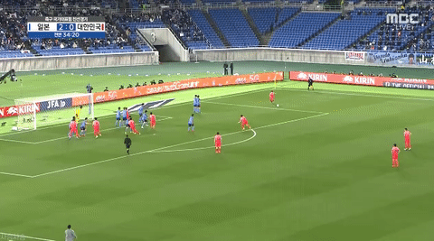 일본의 역습 상황에 수비로 복귀할 의지가 없음.. 일본 선수들이 전력 질주하는 것과 매우 비교되는 장면.. 예전에 우리가 봐오던 한일전과는 투지부터가 너무 달랐음