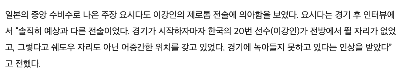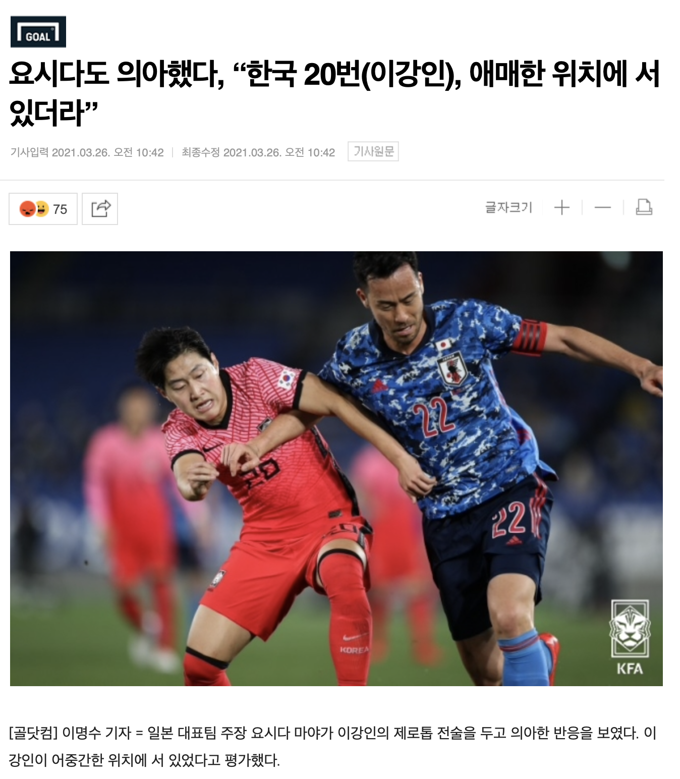 일본 주장 요시다, "이강인 자리가 의아했다"