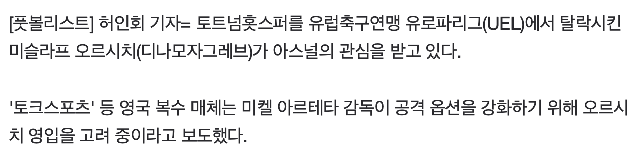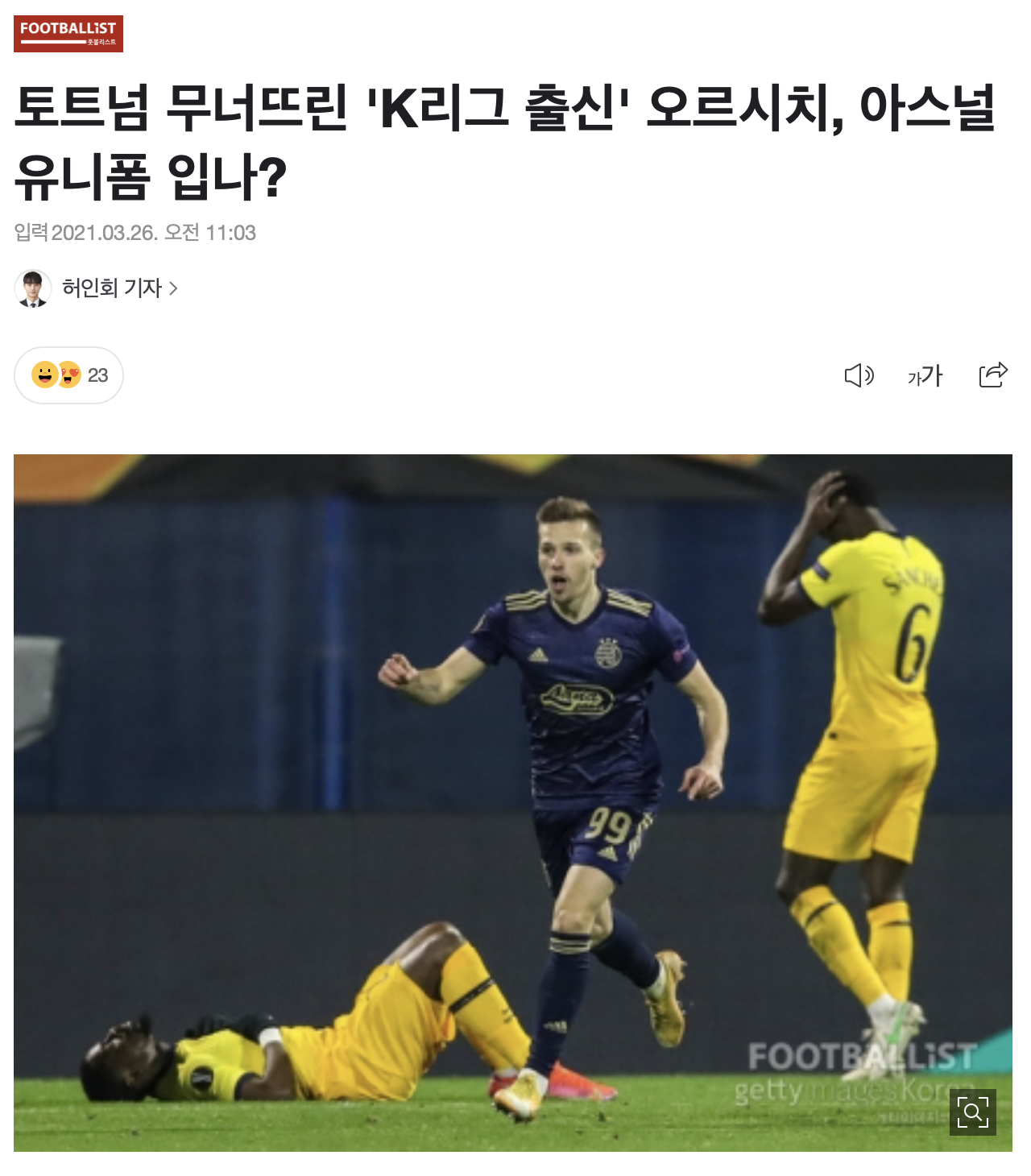 (전남드래곤즈, 울산현대에서 뛴 적이 있는 오르샤ㄷㄷ 토트넘 상대로 해트트릭 후 아스널 이적설이 나옴)