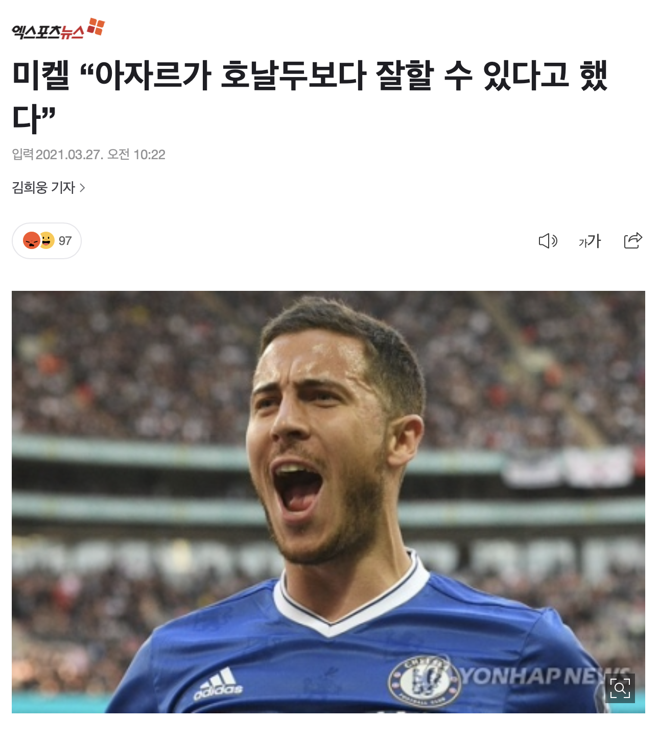 미켈 "아자르는 자신이 호날두보다 잘할 수 있다고 말했다"