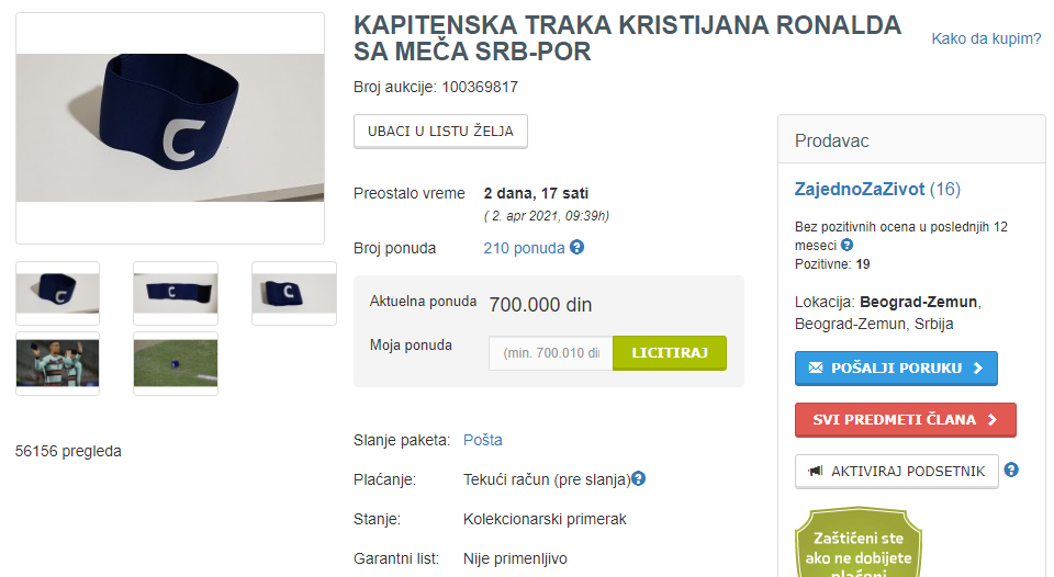 | 경매 사이트에 올라온 '호날두가 내던진 주장 완장' | |
