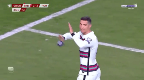 세르비아와의 경기에서 오심으로 인해 1골을 날려버리고 화가난 호날두