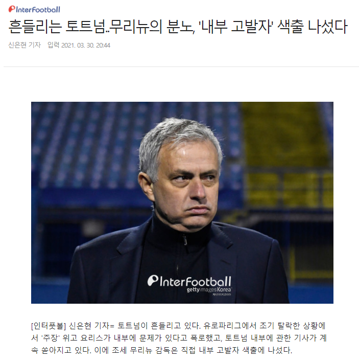 [무리뉴의 분노, '내부 고발자' 색출 나섰다]