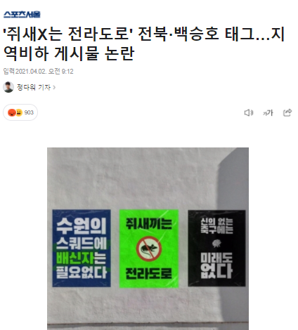 '쥐새X는 전라도로' 현재 논란되고 있는 지역비하 게시물