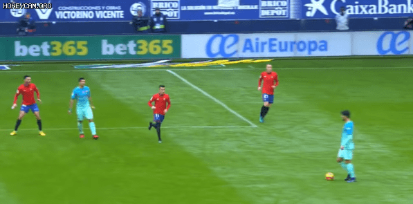 아무도 예상하지 못한 타이밍에 패스 넣어주는 메시.gif