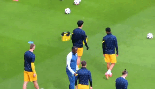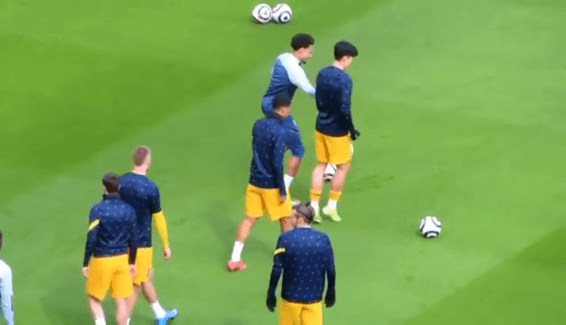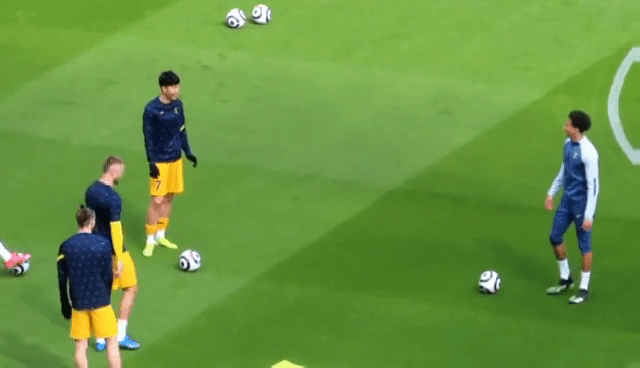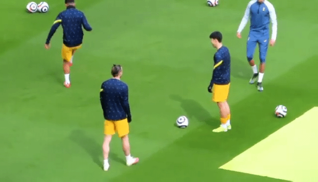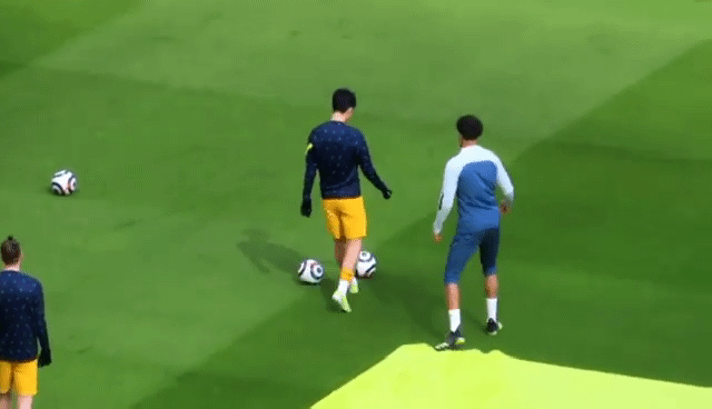 [몸 풀다가 장난치는 손흥민 델리.gif]