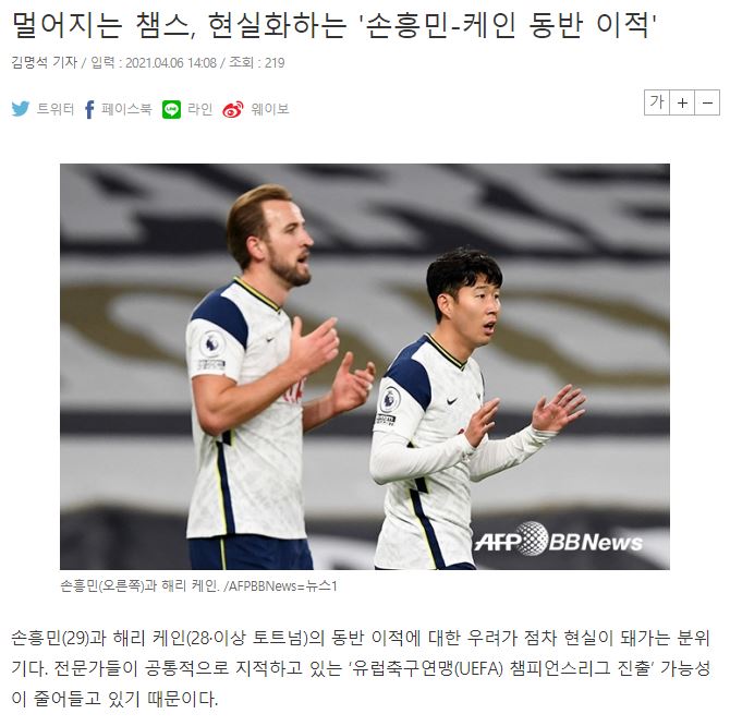 [멀어지는 챔스, 손흥민-케인 동반 이적 가능성]