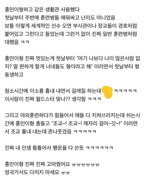 [훈련소 동기가 쓴 '흥민이 형 훈련장 썰']