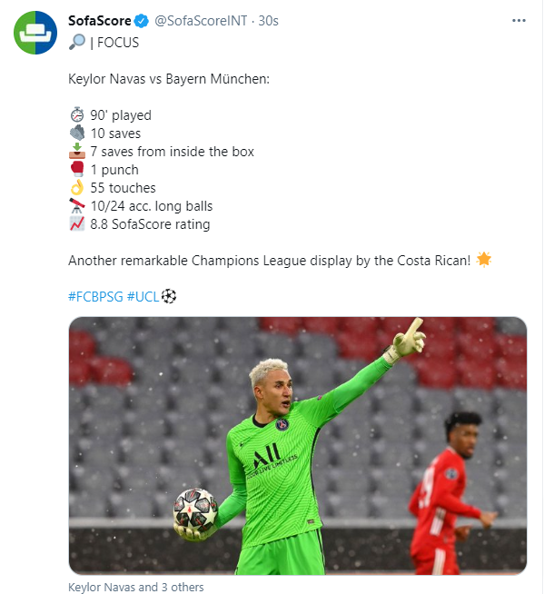 뮌헨을 상대로한 나바스의 10 세이브.. 참고로 뮌헨은 슈팅시도 25번, 유효 슈팅 12번에 2득점함ㄷㄷ