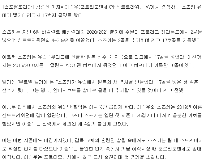 이승우 경쟁자였던 일본 선수, 벨기에 17골 기록 중