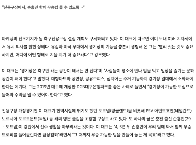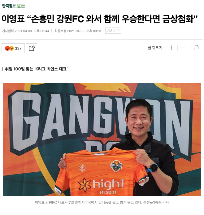 이영표 대표, "손흥민이 강원FC로 와서 은퇴했으면.."