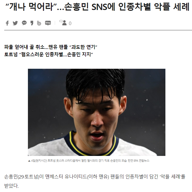 [“개나 먹어라”…손흥민 SNS에 인종차별 악플 세례]