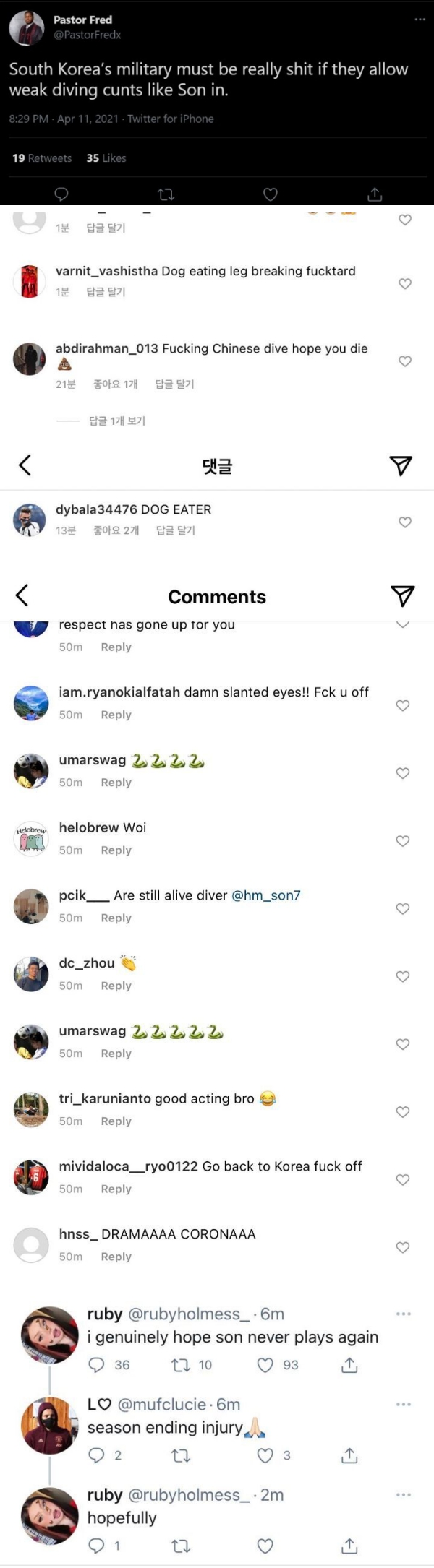 선 넘는 인종 차별 댓글들 진짜 너무하네..