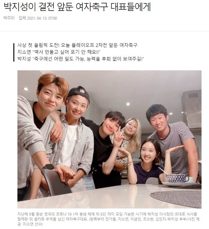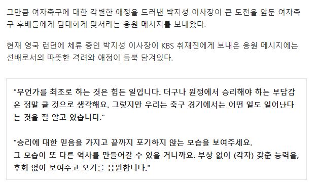 [결전 앞둔 여자축구 대표들에게 전하는 박지성의 응원]