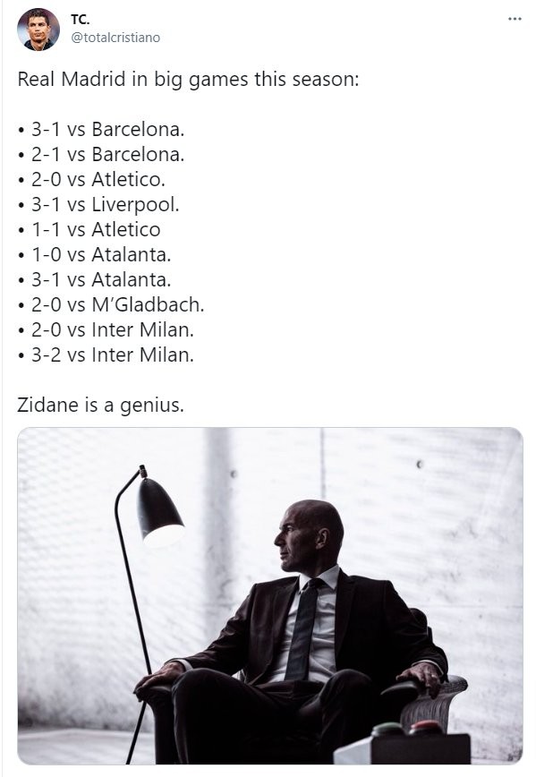 이번 시즌 빅게임들을 헤쳐나간 '지단 감독의 위엄'