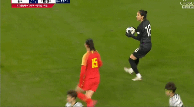 도쿄올림픽 여자축구 최종 예선 중국의 골킥 방해.gif