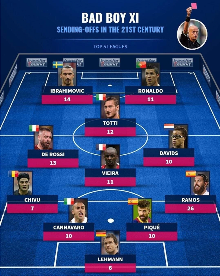 [21세기 퇴장 가장 많이 당한 선수 BEST 11]