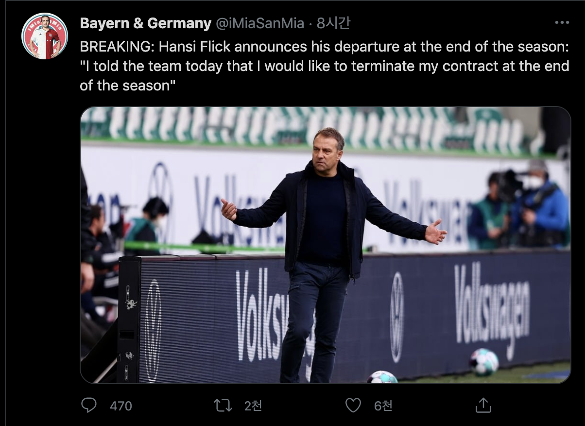 [바이에른 뮌헨의 한지 플릭은 올시즌을 끝으로 팀 떠남]