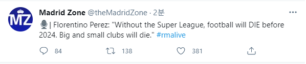 " 슈퍼리그가 창설되지않으면 2024년 안에 크고 작은 클럽들은 죽을것이다."