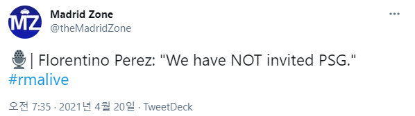 [페레즈 " 우리는 파리(PSG)에게 초청장을 보내지않았다"]