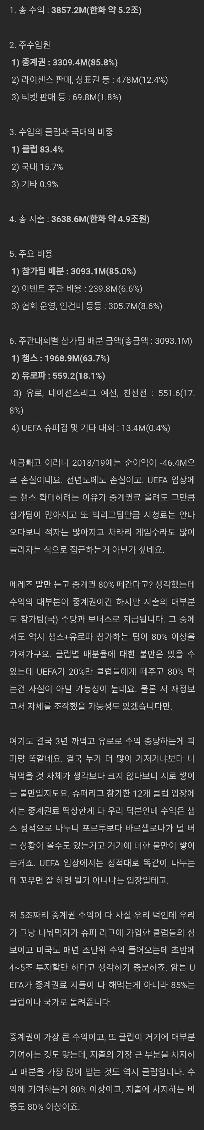 [페레즈가 빡친 'UEFA의 중계권 수익배분 구조']