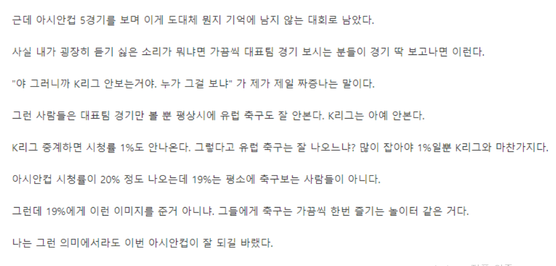 (공감되는 말이네요.. 요즘 대부분 하이라이트나 움짤로만 보고 풀 경기보는 사람이 적죠. 유럽 축구 중계는 적자라는 말도 많고)