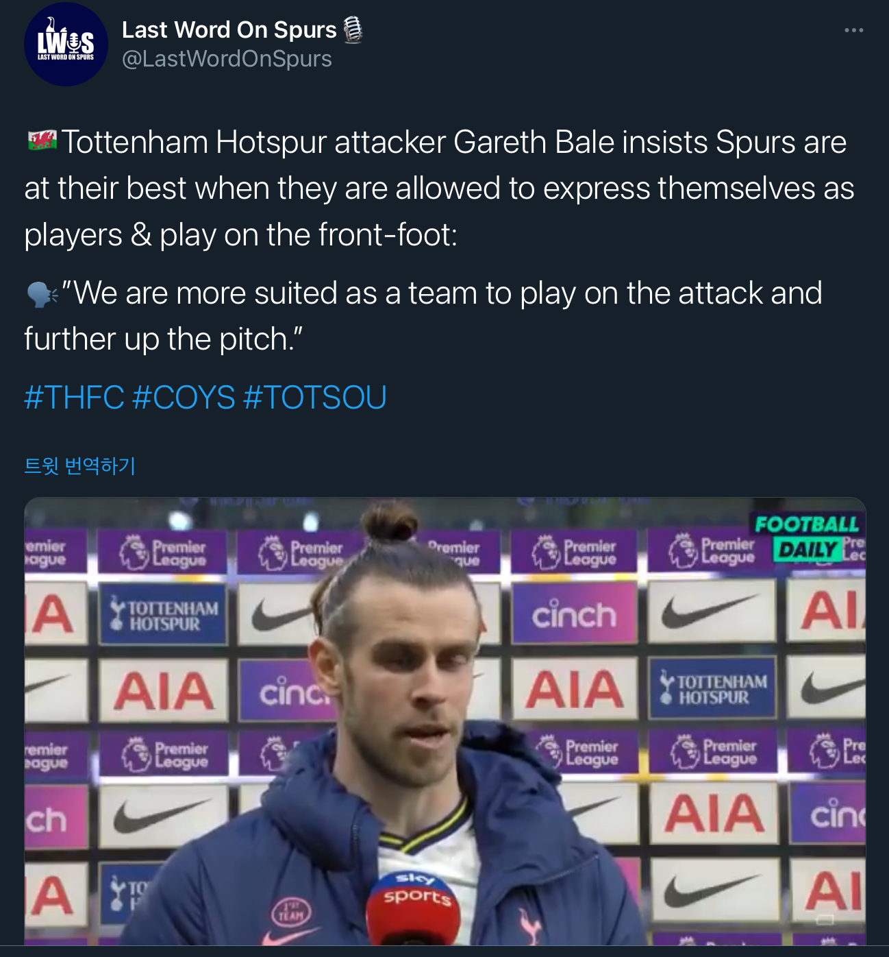 베일 "우리 팀은 앞선에서 공격적으로 플레이하는 것이 더 적합합니다."