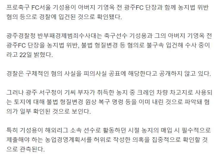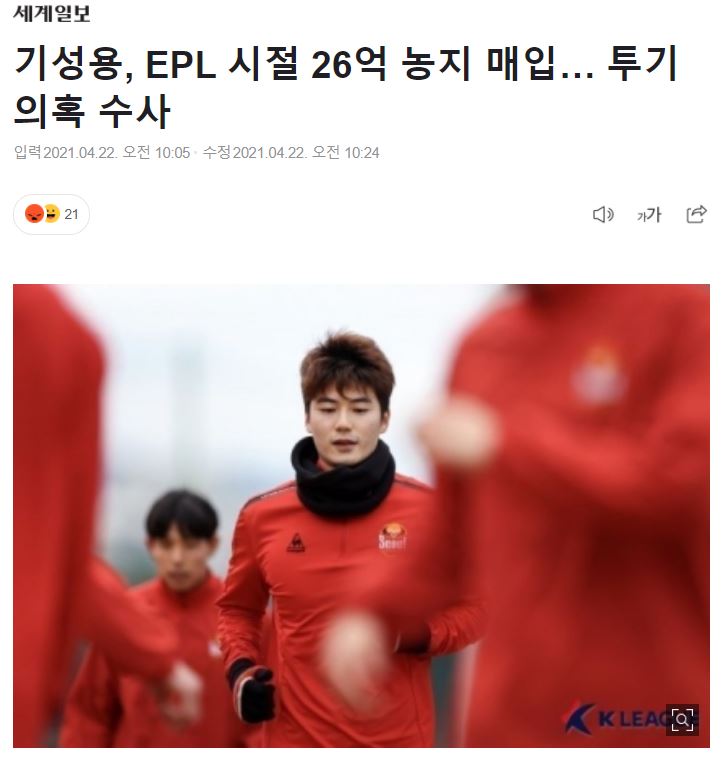 | 기성용, EPL 시절 26억 농지 매입.. 투기 의혹 수사 | |