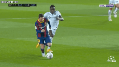 순간 깨진 밸런스를 버티고 선제골 박는 메시ㄷㄷ.gif