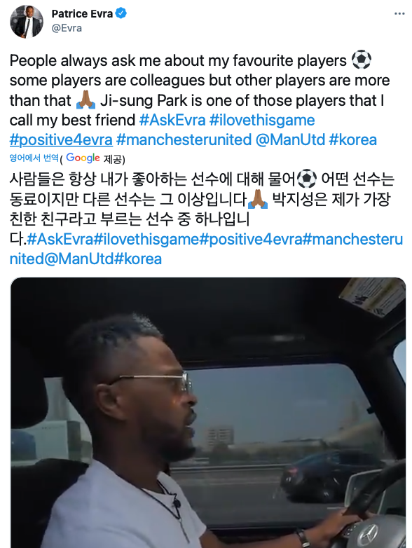 ['동료 그 이상이다' 박지성과의 관계에 대해 직접 밝힌 에브라]