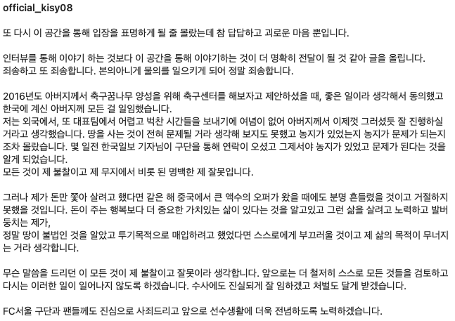 [땅 투기 의혹에 대한 '기성용의 해명']