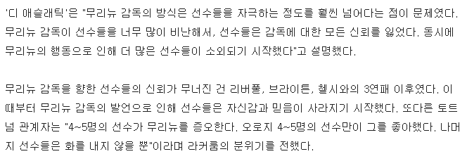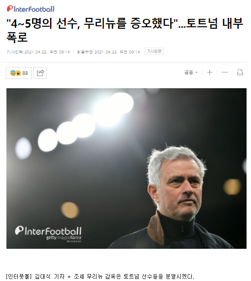 [토트넘 내부폭로 "4~5명이 무리뉴를 증오했다"]