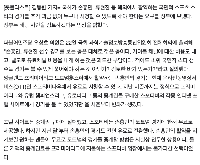 "손흥민 경기 유료 시청은 과도한 부담" 정부가 검토하겠다
