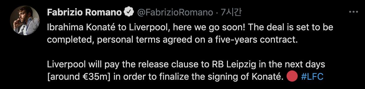 파브리지오 로마노 - 이브라히마 코나테 이적 근접, 5 년 계약으로 개인 조건이 합의 완료