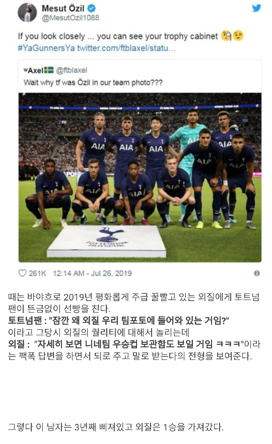 [토트넘에게 3년째 삐져있는 외질ㅋㅋㅋ]