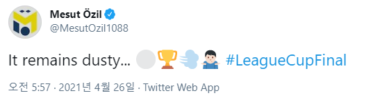토트넘이 리그컵 결승에서 패배한 후 외질은 트위터에 토트넘을 조롱하는 글을 올림 "먼지만 남아있어... 리그컵 결승"
