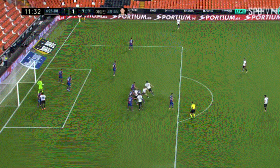 [상대팀을 다 속인 이강인의 코너킥 스킬.gif]