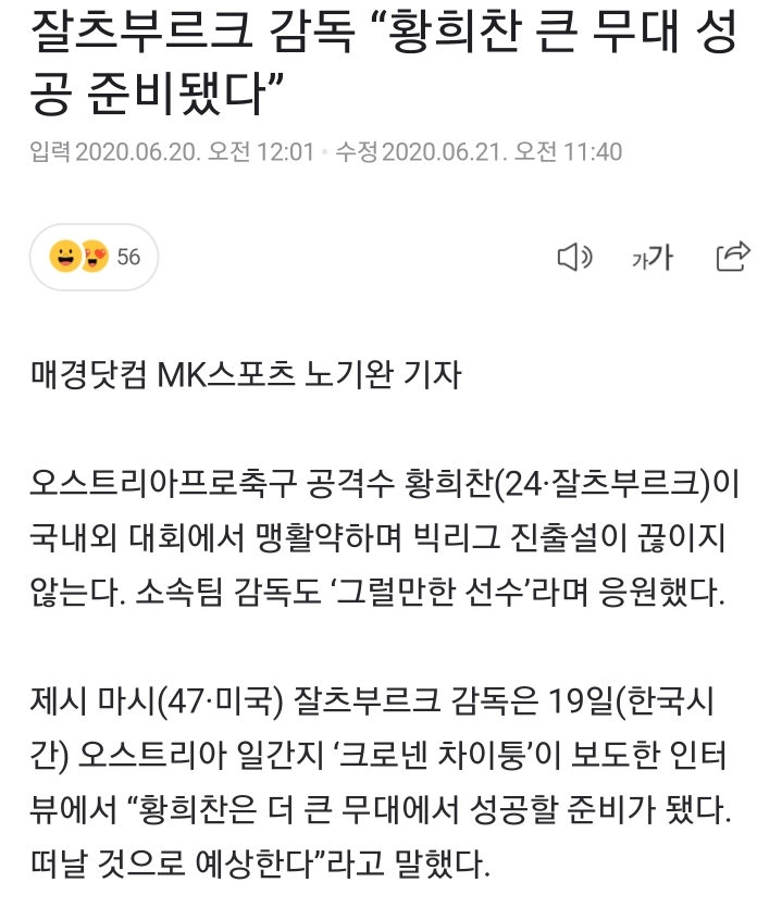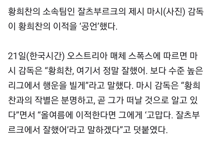[라이프치히 감독 유력후보 '제시 마치'의 황희찬 관련 인터뷰들]