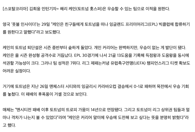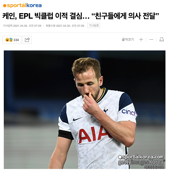 케인, 토트넘 떠나 빅클럽 합류 원해.. 친구들에게 말했다