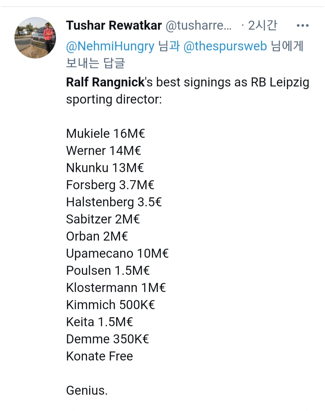 토트넘 감독후보 '랄프 랑닉'이 영입했던 선수들 이적료ㄷㄷㄷ