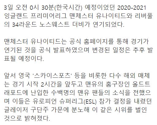 | 맨유 팬들의 폭력시위로 맨유vs리버풀 더비 연기ㄷㄷ.gif | |