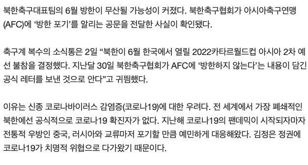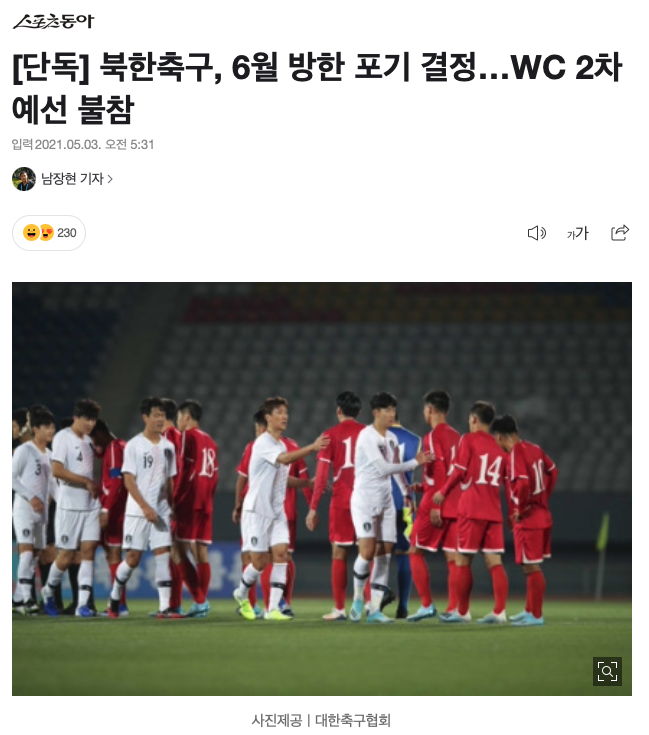 북한, 6월 방한 포기 결정.. 월드컵 2차 예상 불참