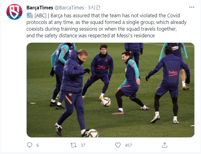 바르샤는 훈련 세션 또는 스쿼드가 함께 여행 할 때 이미 공존하는 단일 그룹을 구성하고 메시의 집에서 안전 거리를 존중 했기에 팀이 Covid 프로토콜을 위반하지 않았음을 확인했다고 하네요!