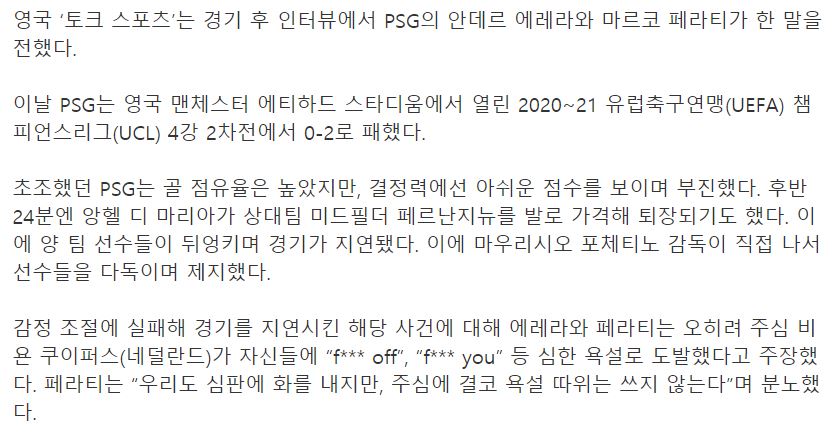 | PSG 선수들, “심판이 우리에게 욕했다” 주장 | |